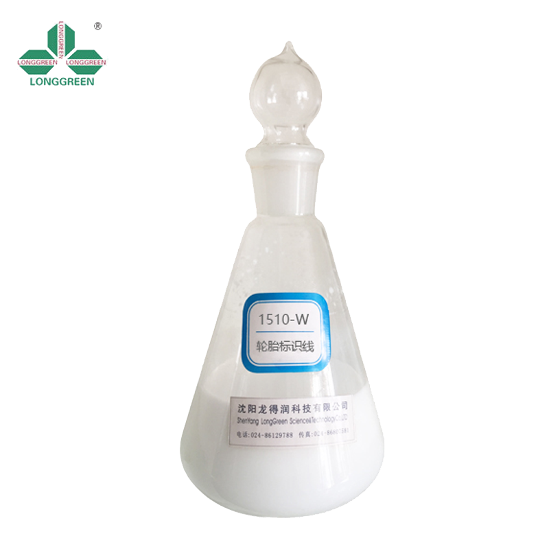 Longgreen 1510 series is a water-based tire marking paint, mainly used in tread and other rubber strip extrusion processes. This series of products includes green, white, red, yellow, blue and other different colors. The product does not contain any organic solvent, and can be used for various color deployment and viscosity control according to the actual application needs of customers. The product has a short drying time, and the adhesive strip can be completely dried before entering the water tank to cool. Longgreen 1510 product has strong adhesion to rubber surfaces and is bright and eye-catching after vulcanization.